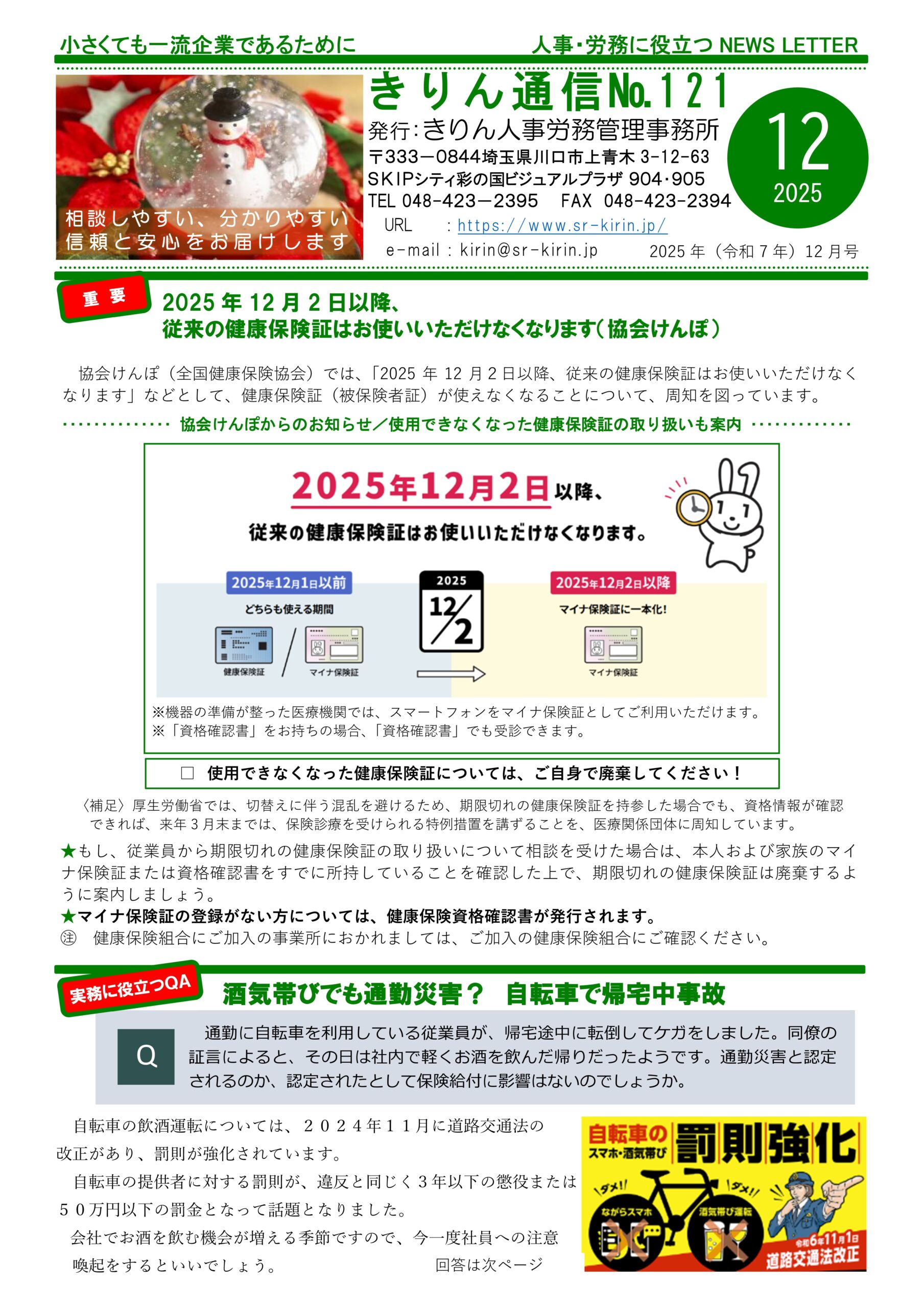 きりん通信№121 2025年12月号 ♦「成功」とは、自分の達成感の事だ。結果はオマケでしかない♦